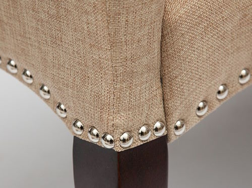 Элементы стиля: Кристаллы, металлические клепки, фигурные подлокотники и ножки.