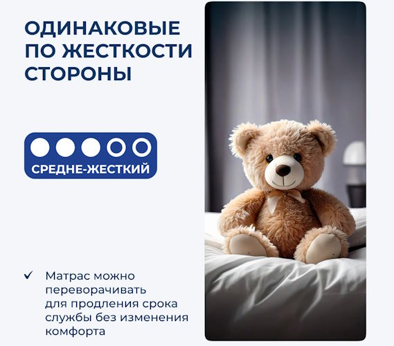 Детский ортопедический матрас Kitti от компании «Линия Флекс» - превосходный выбор и 100% гарантия здорового сна Вашего чада! Максимальная допустимая нагрузка – 50 килограмм. Оснащен «беспружинным» пружинным блоком.