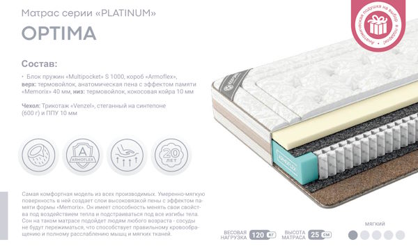 | Тип матраса | Пружинный - Multi Pocket S1000 |
