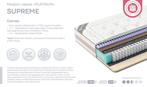 | Тип матраса | Пружинный - Multi Pocket S1000 |