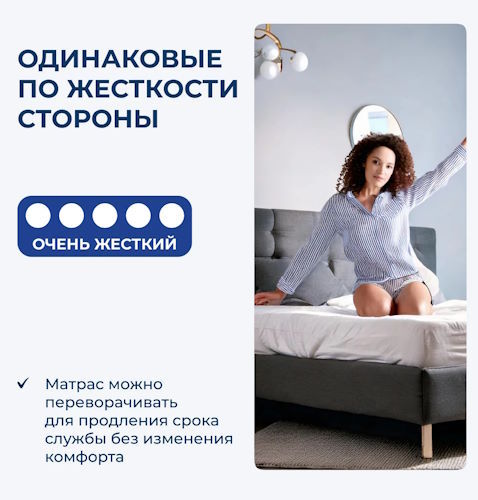 Высокоэластичный ортопедический матрас Superba способен придать высочайший уровень комфорта во время сна и отдыха. Прекрасно подходит для типа людей, которые не «привязаны» к определенной жесткости. Эта модель способна менять уровень упругости от «жесткой» до «мягкой». Нужно просто перевернуть матрас.