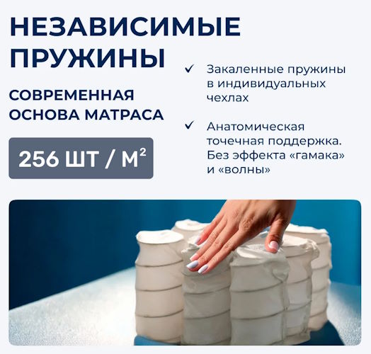 Подпись к товару Max. вес на спальное место - 120 кг, С независимыми пружинами, любой размер матраса