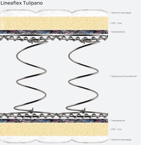 | Тип матраса | Блок зависимых пружин Bonnel |