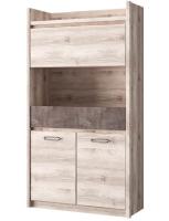Размер белорусского шкафа JAZZ 3D1SN составляет 96×39 см (ширина/глубина). Он займет небольшое пространство и своим оригинальным внешним видом украсит гостиную и кухню. На его полках можно расставить красивую посуду, элитный алкоголь и сувениры, в ящике и за дверями – вещи, не предназначенные для общего обзора.